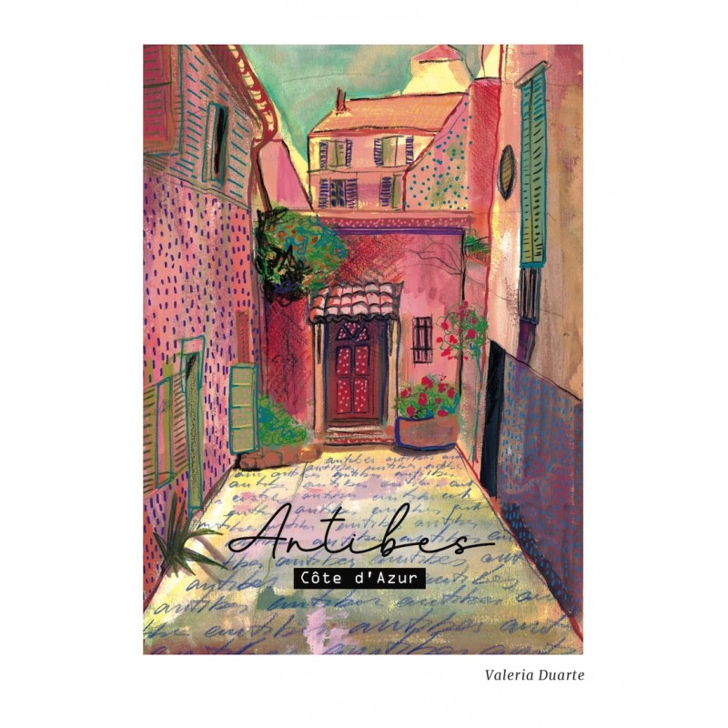 Offrez-vous un cette carte postale artistique d'une rue d'Antibes.